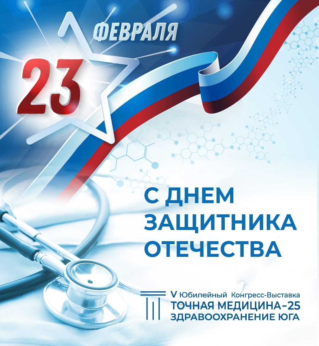 Коллектив Конгресса-Выставки ТОЧНАЯ МЕДИЦИНА поздравляет всех мужчин, а также всех медицинских работников с праздником доблести и мужества - Днем защитника Отечества!